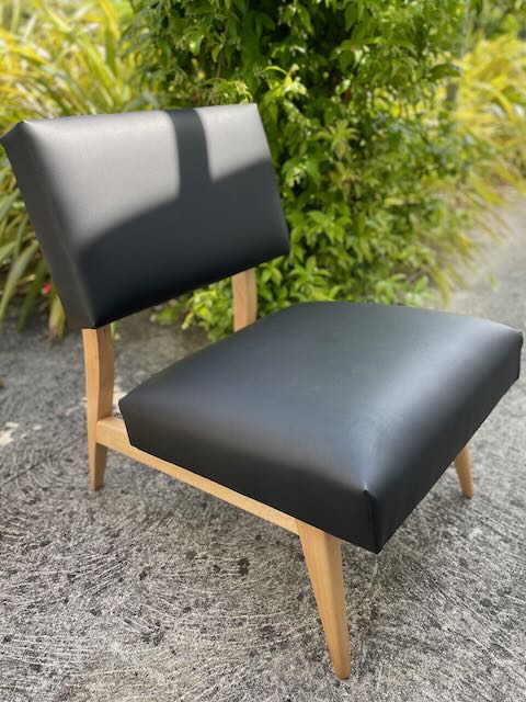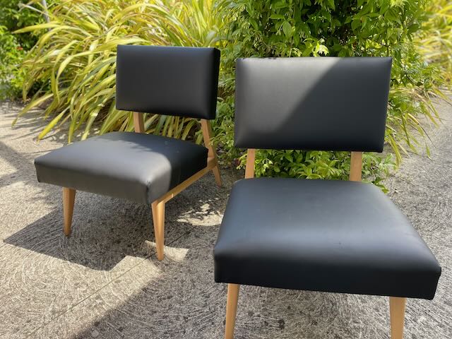 Voici un bien joli projet que j'ai eu le plaisir de rénover entièrement. Il s'agit d'une paire de petites chauffeuses vintage de style Pierre Guariche, l'un des designers mythiques des années 50.